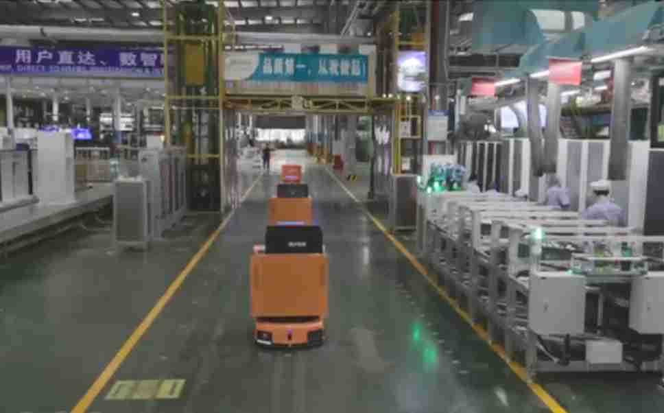 为车载冰箱物流配送打造的智能解决方案,,包含产中物流通过潜伏举升AMR搬运至线边,,,产后成品物流智能仓储,,,流程包含产中物流智能齐套入库,,,线边安灯叫料AMR智能配送至线边,,,成品入库、、出库,,,,通过无人堆高车机器人,,,,智能仓储管理替代人工作业管理,,实现更高存储、、更高效率、、、更具柔性化的解决方案。。。
